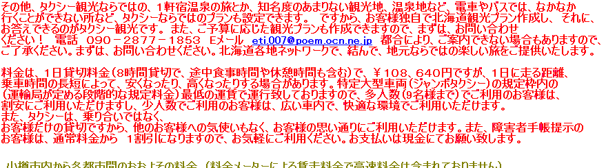 小樽観光個人タクシー山崎まで お願い致します
